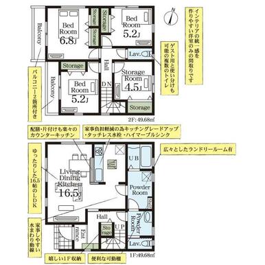 | 設備 | システムキッチン 床下収納 モニタ付インターホン ディンプルキー 浄水器 浴室乾燥機 追焚機能 シャワー付洗面化粧台 人感センサー付照明 ダウンライト 照明器具 | ||