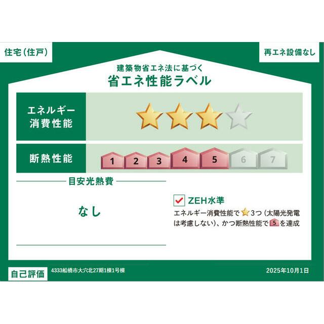| エネルギー消費性能 | ★★★(削減率20%達成) | 断熱性能 | 5段階/7段階中 |